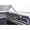 Premsa manual per estampació amb obertura automàtica i plat desplaçable cap al davant.