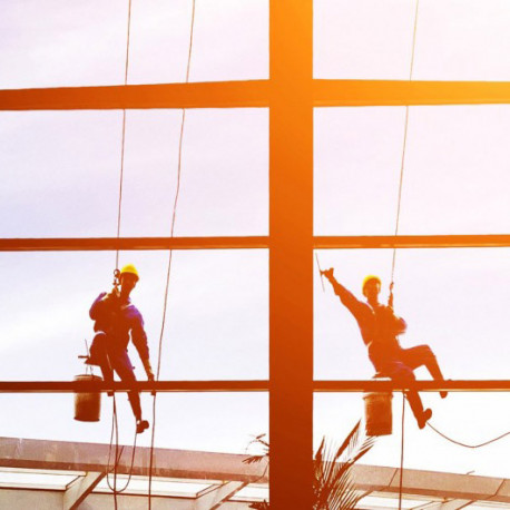 Làmina de polièster que reflecteix la imatge com un mirall a la llum del dia mentre manté la transparència i propietats visuals del vidre des de l'interior.
