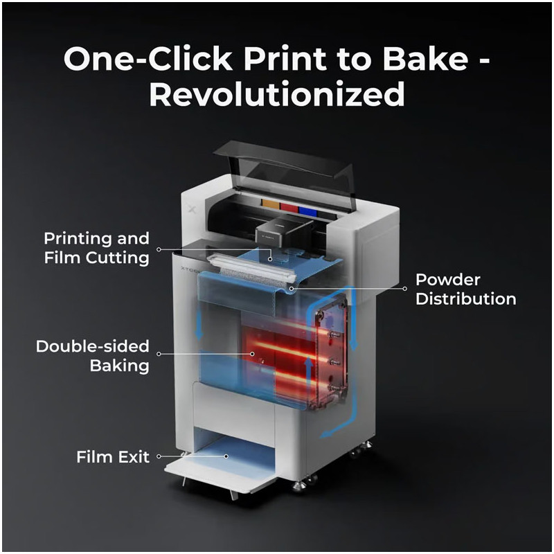 La XTool DTF Apparel representa una nova generació d’equips d’impressió Direct-to-Film, concebuda per oferir un flux de producció altament automatitzat, estable i amb resultats de qualitat comercial. Aquest sistema està format per tres components que treballen de manera coordinada: la impressora DTF, l’aplicador-curador de pols OS1 i el purificador d’aire AP2 Safety Pro, creant una solució completa i segura tant per a entorns professionals com per a espais reduïts.