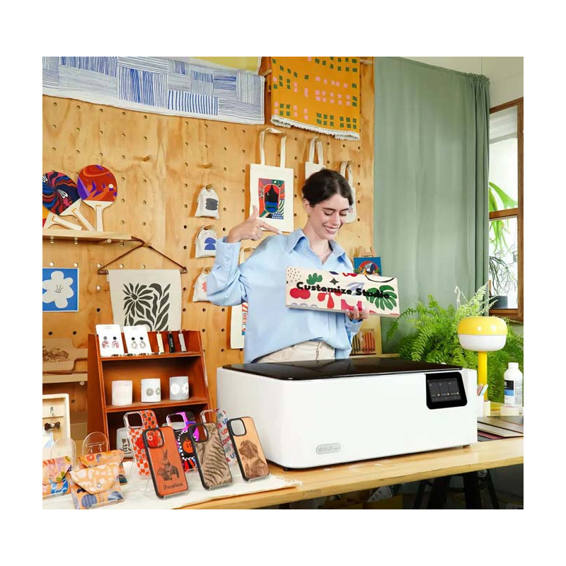 Incorpora impressió a color amb tecnologia CMYK i un ampli espai de treball de 430×300 mm, ideal per imprimir a superfícies planes amb un gruix de fins a 3 mm. Ador combina versatilitat i qualitat per fer destacar els teus projectes.