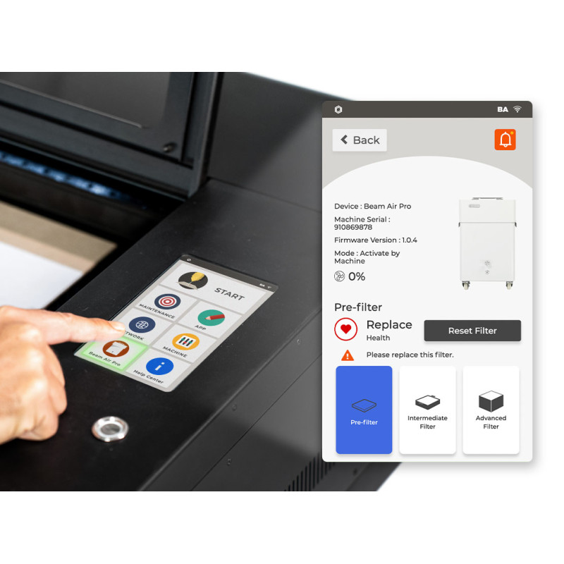 Descobreix el Beam Air Pro, un sistema de filtració dissenyat per mantenir l’aire del teu taller, estudi o aula net mentre utilitzes talladores làser. Compatible amb FLUX Beambox, Beambox Pro i HEXA, i adaptable a altres marques, ofereix: