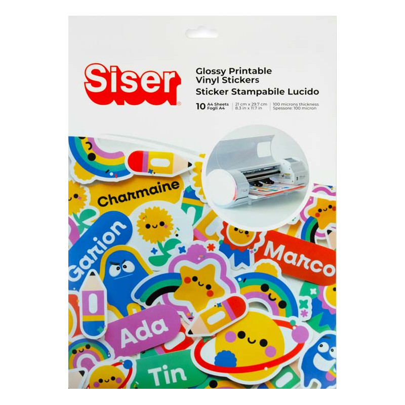 1FCRPKSTICK10-GLO – Glossy Printable Vinyl Stickers (10 fulls A4, acabat brillant).