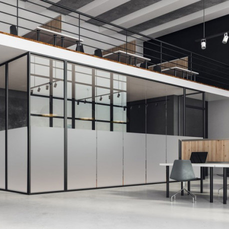 El film per vidres INT 200 de Reflectiv converteix les finestres en un glacejat blanc que obstaculitza la visió però permet que la llum passi.