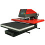 La seva platina de 80 × 100 cm permet treballar peces de grans dimensions com tèxtils, pancartes, panells rígids o materials per sublimació. El sistema pneumàtic garanteix una pressió constant i repetible, reduint l’esforç de l’operador i millorant la qualitat del resultat final.