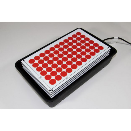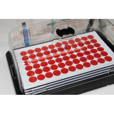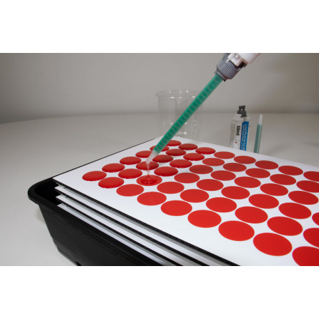 Kit inicial para aplicar gota de resina sobre etiquetas cortadas.