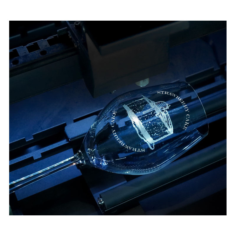 De muy fácil instalación y uso para poder grabar sobre objetos circulares. Permite grabar sobre superfícies complejas y objetos cónicos.