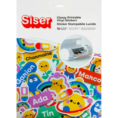 1FCRPKSTICK10-GLO – Glossy Printable Vinyl Stickers (10 hojas A4, acabado brillante).